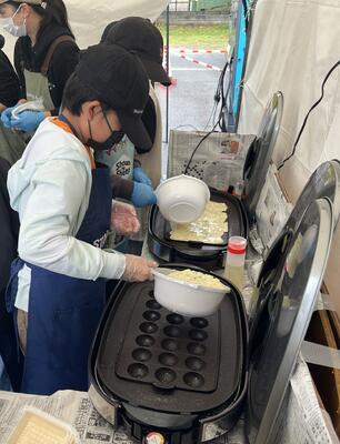 総合の学習で学んだ米粉で作ったたこ焼き「きのたこ」の調理と販売、接客とう様々な経験をすることができました。