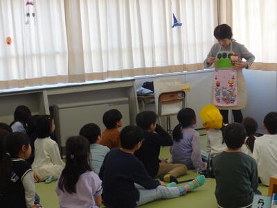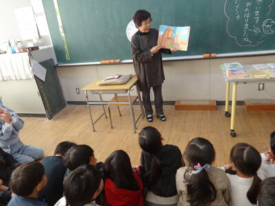 11月には、「こすずめの会の皆様」、「夢絵本野いちごの桐生美智子様」、「中条高等学校の皆様」から読み聞かせをしていただきました。きのと小学校の子どもたちが、読書に慣れ親しみ本が大好きなのは、このような経験をたくさんさせていただいているからです。感謝申し上げます。
