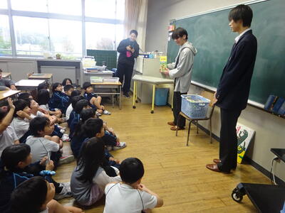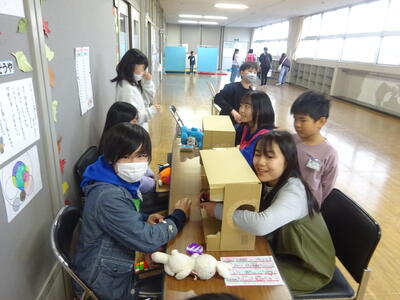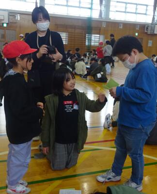 11月19日(水)に、児童会が主催の「友だちいっぱいチャレンジワールド」が行われました。縦割り班(1年生から6年生までが一緒の班)で協力し、出店の運営をしたり一緒に出店を回ったりしました。活動の後には、一緒に活動した仲間へ手紙を渡しました。