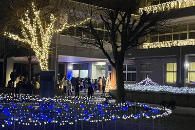 この日を迎えるために、菅原電気工事様には沢山のお力添えをいただきました。乙の冬を彩る毎年恒例のイルミネーションは、2月の終わりまで点灯予定です。
