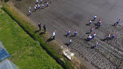 ボランティアの小泉さんやJAの職員の指導のもと、5年生が田植えを行いました。