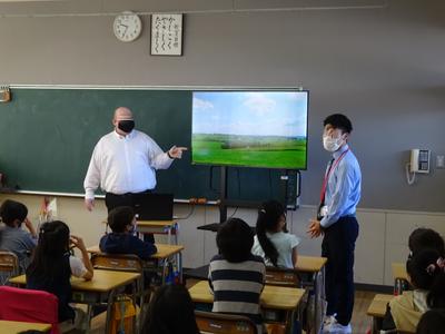 これまで新型ウイルス感染症予防対策として来日が遅れていたALTとの授業が始まりました。とても楽しそうに初めてのALTを交えた外国語活動をする3年生でした。